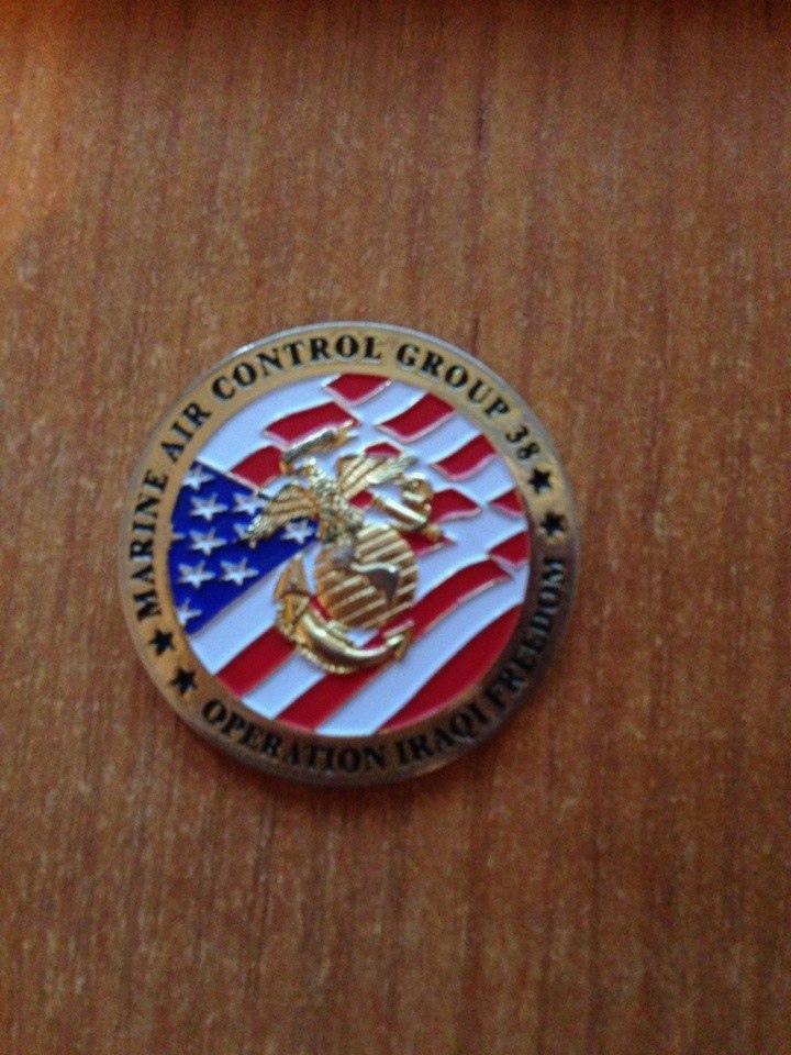 Памятный жетон, который Уилан подарил одному из своих российских знакомых-суворовцев: Marine Air Control Group 38 – Группа управления авиацией морской пехоты, жетон выпущен в память иракской миссии. Источник: Архив «Досье».