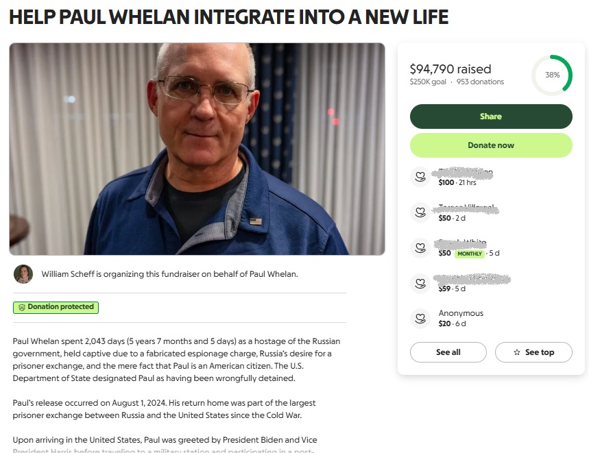 скан сайта с пожертвованиями Источник: https://www.gofundme.com/f/help-paul-whelan-rebuild-his-life