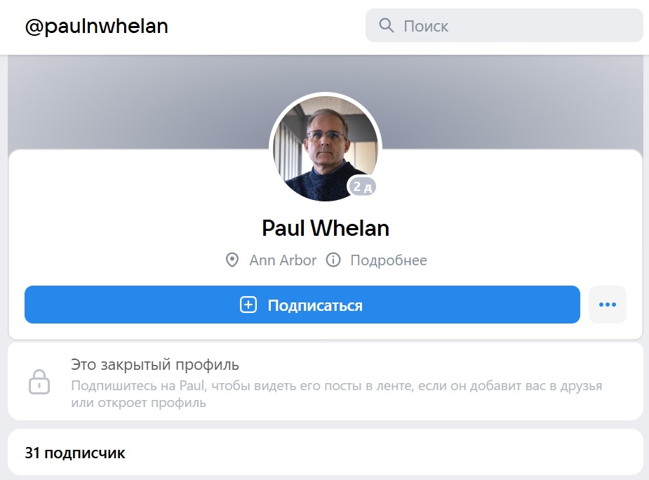 В настоящее время страница Уилана активна, но закрыта для просмотра посторонними.